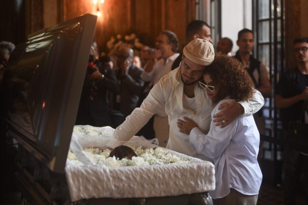 Francisco Gil, filho único da artista, foi um dos primeiros familiares a chegar no local. Ele chegou acompanhado da namorada, Alane, e se aproximou do caixão para começar as despedidas finais.