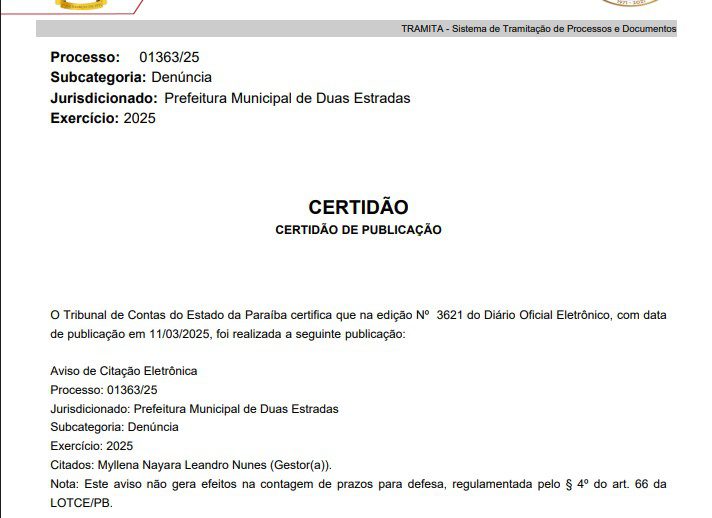 Duas Estradas, PB — A gestão da prefeita Myllena Nayara (PSD), da cidade de Duas Estradas, agreste paraibano, enfrenta uma série de questionamentos envolvendo nepotismo e, mais recentemente, denúncias e pedidos de esclarecimento sobre gastos com diárias e suspeitas de favorecimento político dentro da atual gestão. A reportagem reuniu decisões judiciais, procedimentos do Ministério Público da Paraíba (MPPB) e páginas de transparência para explicar o que há de oficial até agora — e o que ainda precisa ser esclarecido.