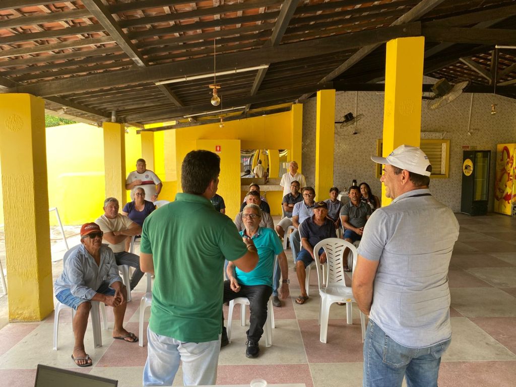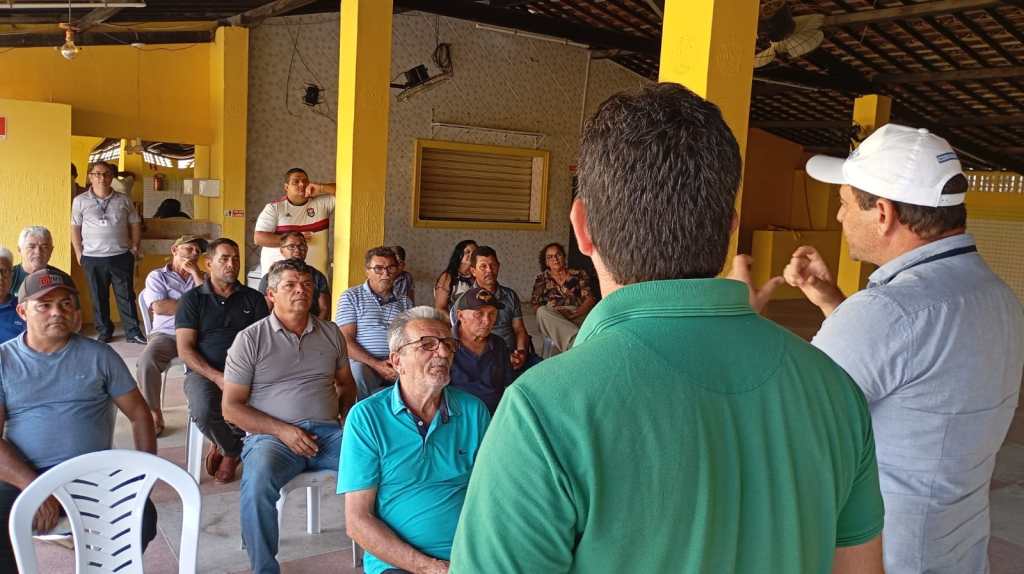 Reunião contou com a presença do técnico Adriano Leite (Plena/Consultoria/Codevasf), agricultores e lideranças locais; presidente da ACSDE, Júnior Oscar, lidera articulação pelo benefício.